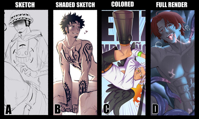 Only the commissioner is allowed to use their commission, personal use only. Commissioners do not have the right to mint/sell their commissions for nft.— Contact me by DM (on Twitter @Starmiu_), bluesky or Discord for more info or questions.— I have the right to refuse your commission if it makes me uncomfortable. You can ask me for anything without problem (I draw any kind of fandom including Oc and canonxoc. Can be sfw/nsfw).— If possible, avoid real people, mechas, very complex characters. I can draw any type of ship (fiction is just fiction and I can draw your dear tastes with respect). I don't draw furry, but I can try. If you want to ask about "rare" kinks, ask me.— Payment is ONLY accepted through PayPal. All transactions are done in any currency. The price is in euros but PayPal converts the currency automatically.— Full payment is required upfront after I send you the sketch. With "sketch comms" the payment will be made after saying the idea. (Important detail: You can pay as you feel most secure/comfortable, but so that there are no payment problems, it is preferable to pay as a relative/friend).— Rough sketch will be sent for approval. Changes will only be allowed in this phase. Any further changes down the process will require an additional fee.— I do not allow refunds after payment. If I feel the need to refund an individual, I will approach them myself.— Waiting time from 5 days to 30 days maximum (depending on the type of commission, it may take me a week even to finish it), and even longer if it's during school/work months. I can have the "sketch" and "shaded sketch" comms sooner.
